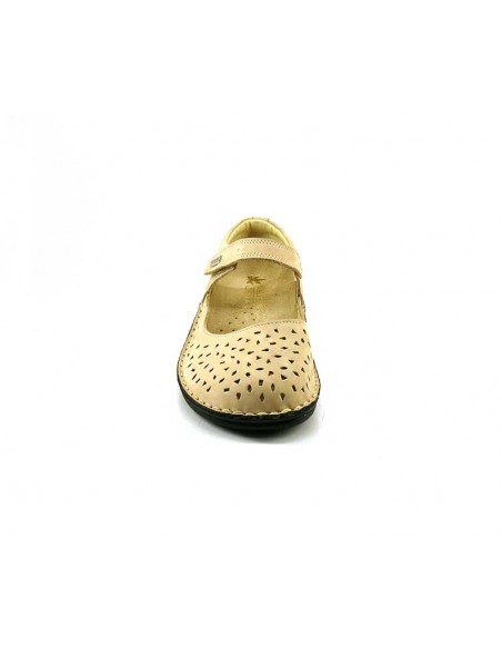 scarpe da donna in pelle fondo gomma, colore beige, zeppa 3,5 cm plateau 1 cm, plantare estraibile, calzata regolare.