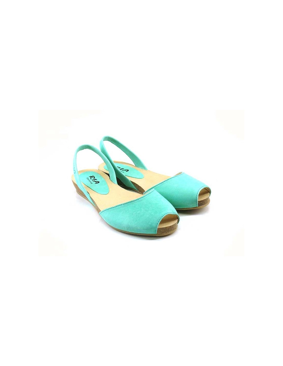 sandali da donna in pelle fondo gomma, taccco 2,5 cm plateau 1 cm, colore acqua marina, calzata regolare.