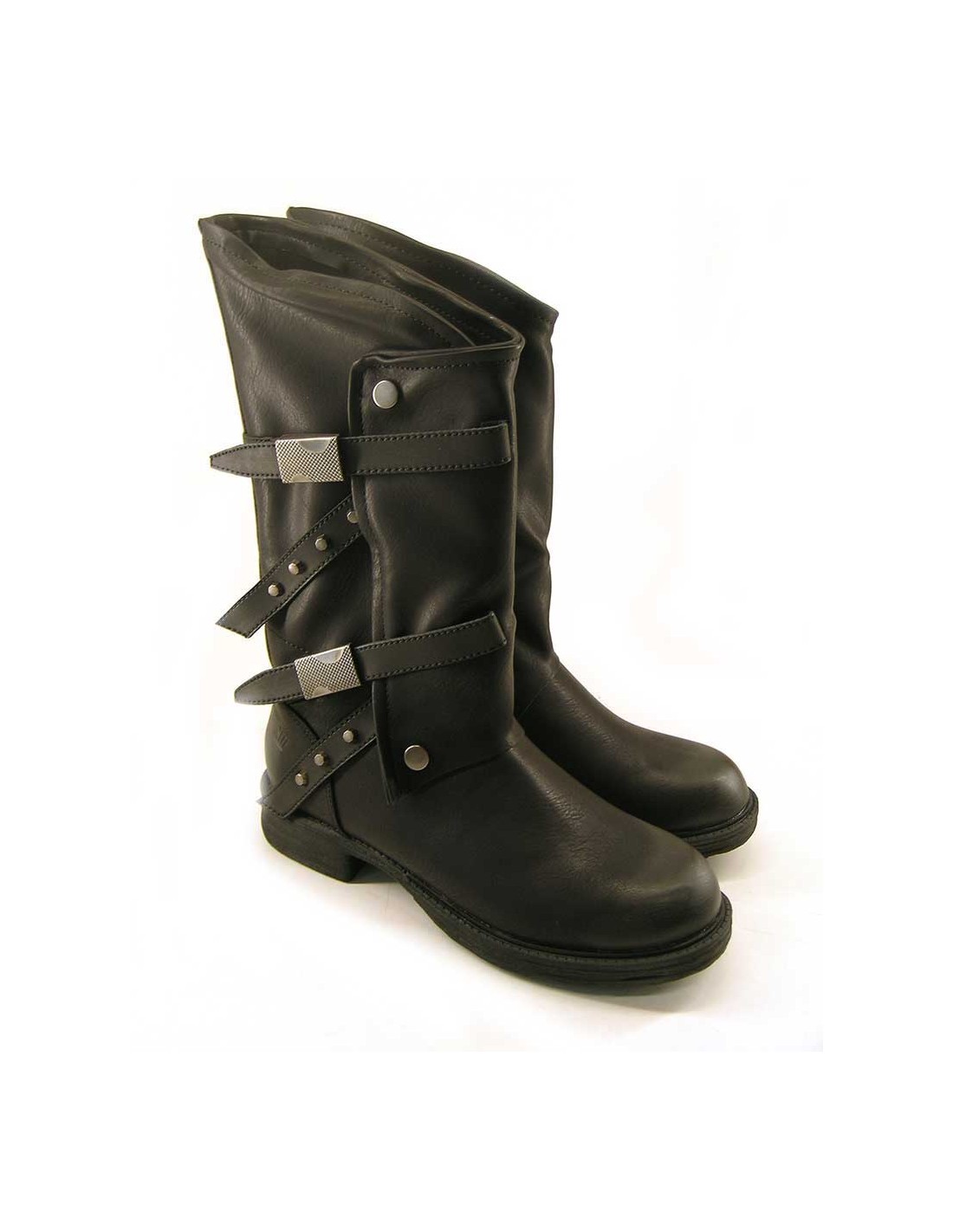 stivali sportivi da donna in eco pelle fondo gomma, tacco 3,5 cm plateau 1,5 cm, colore nero, calzata regolare.